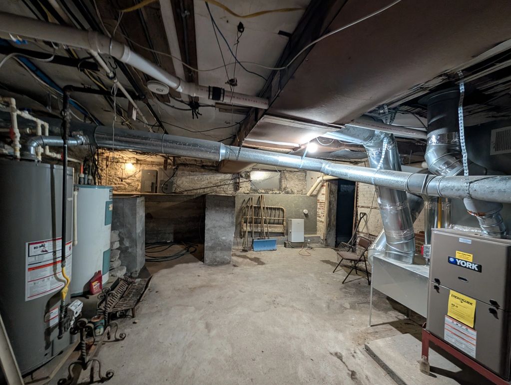 This is a good example of what we found in the basement. Walls bowing in from 200+ years of settling. This had to be stopped.