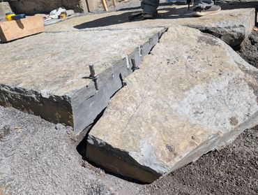 Sometimes Mother nature doesn't give us the right size and we have to cut. What you see here is from using the "Plug and Feather" tools. The plug and feather tools were used long ago before any type power tools were available. When looking at old stone you will see these marks now and again.